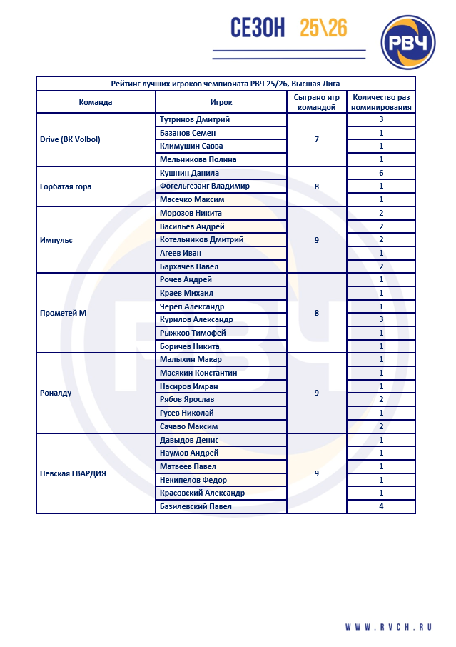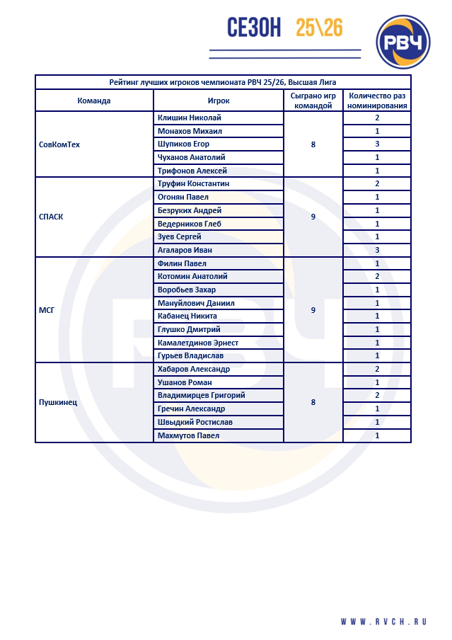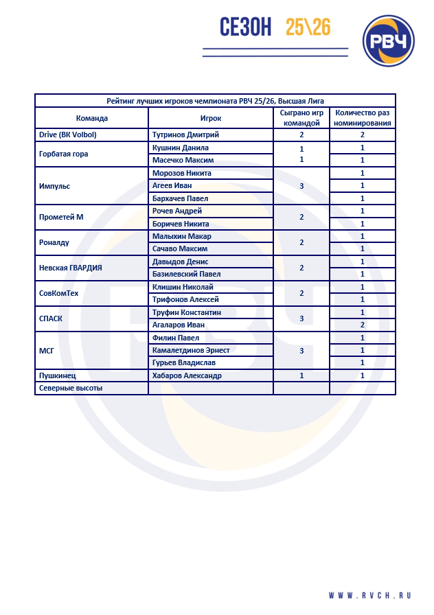 Высшая Лига РВЧ 25\26