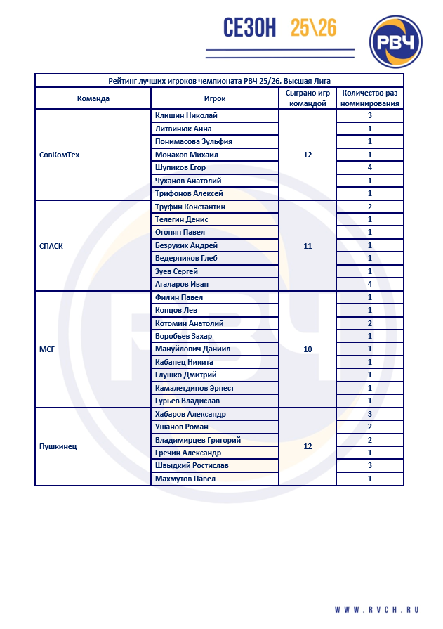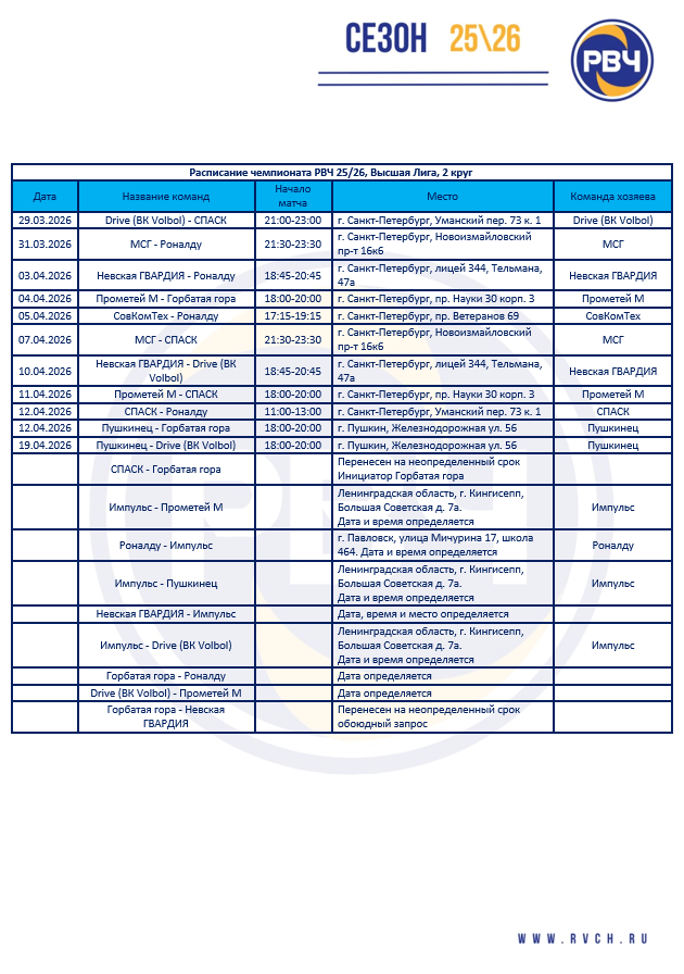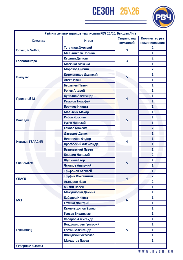 Высшая лига РВЧ 25\26